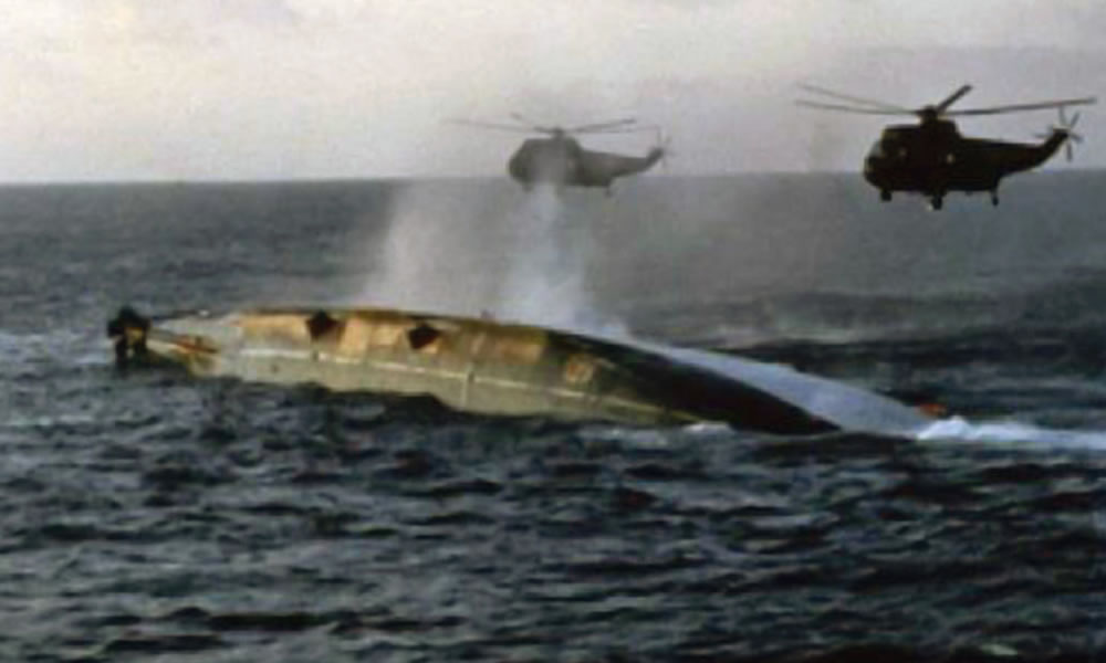 Operation Blackleg was led by Lieutenant Commander Mike Kooner and a team of Naval divers operating from the chartered vessel MV Stena Seaspread between from October – December 1982. It saw the team secure various weapons, destroy sensitive equipment and recover items including coded documents, the captain’s ceremonial sword and telescope, as well as the Cross of Nails from Coventry Cathedral, presented in 1978 when the ship was commissioned. Four decades later, lead diver Ray Sinclair (formerly Suckling), now a journalist has written this narrative: